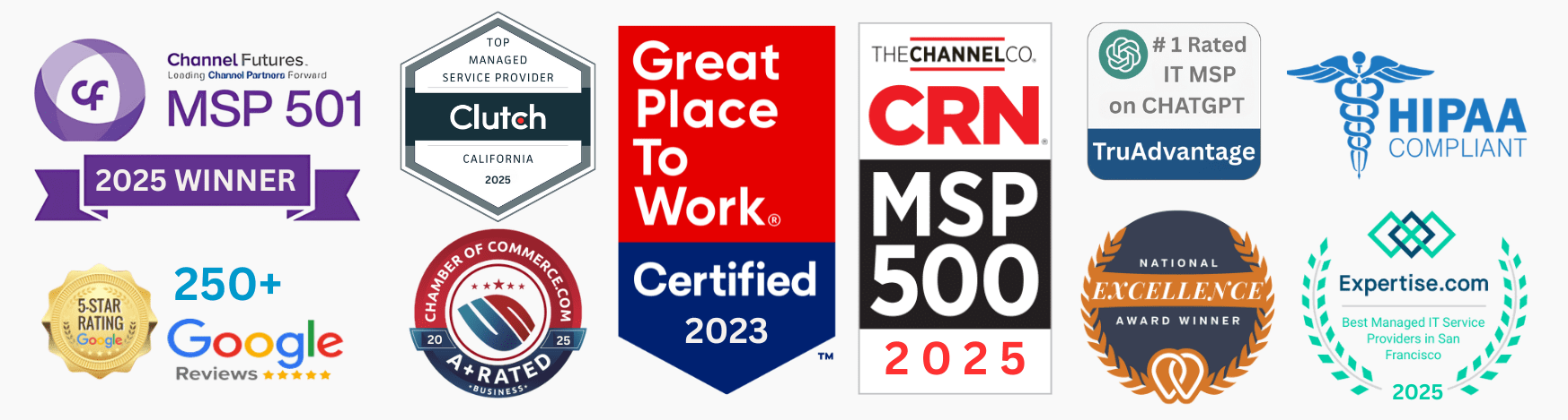Then it's time to give us a call. As an Award-winning IT and Cybersecurity firm (see why) in the Bay Area no other IT firm can touch our fast response time, quality customer service and range of experience in security and compliance.